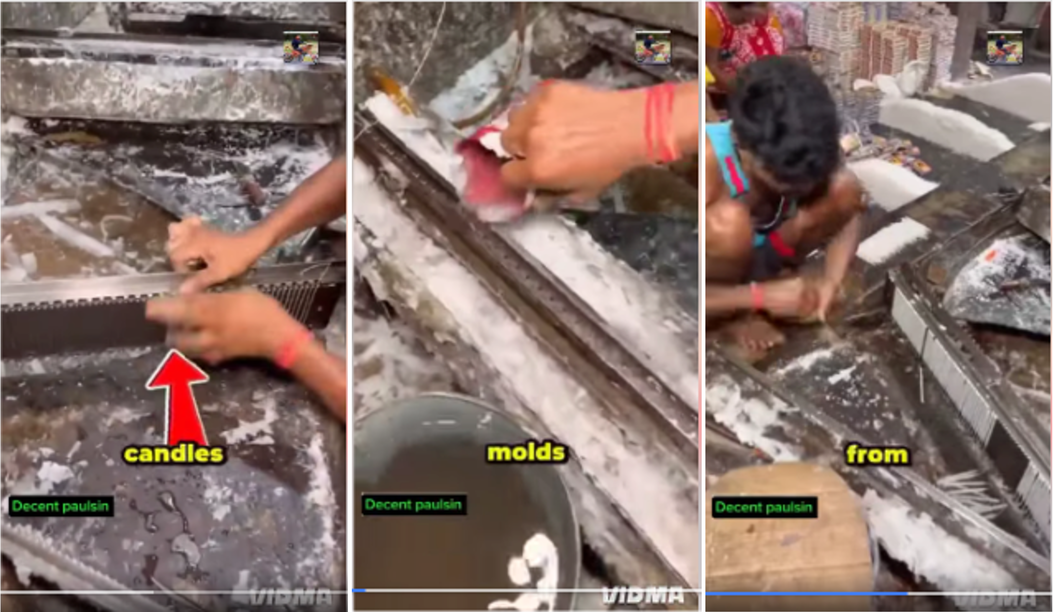 圖三:蠟燭片段中,工人製作蠟燭的過程、背景與被查核片段一致。