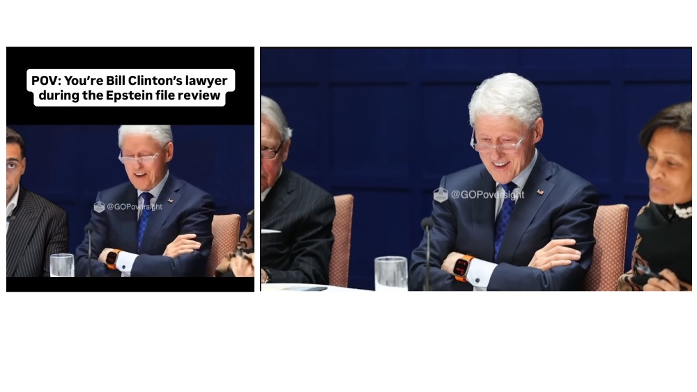 3月5日,Instagram用戶「jonbernardk」發布一則Instagram影片,片中文字寫道:「POV(情境):當你是克林頓在回顧愛潑斯坦案件時的律師」。影片中,前美國總統比爾·克林頓坐在正中,其右側一名男子對他說:「總統先生,作為你的律師,我強烈建議你在檢視證據時不要微笑⋯⋯你這樣看起來有點懷念過去⋯⋯總統先生,請盡量表現得很驚訝。」